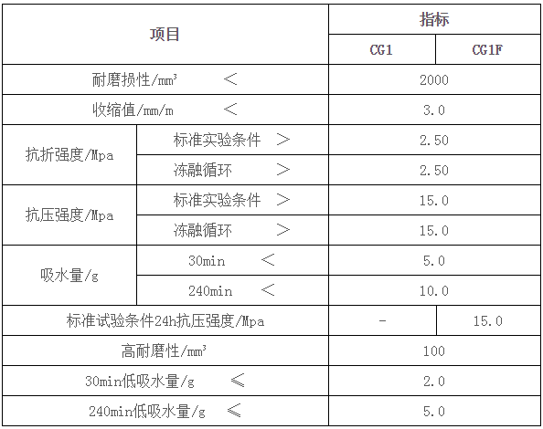执行标准:技术标准:JC/T1004-2006;环保标准:GB18583-2001。